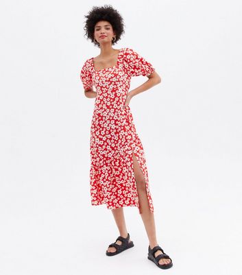 Black Floral Square Neck Puff Sleeve Split Hem Midi Dress £29.99 Quick view